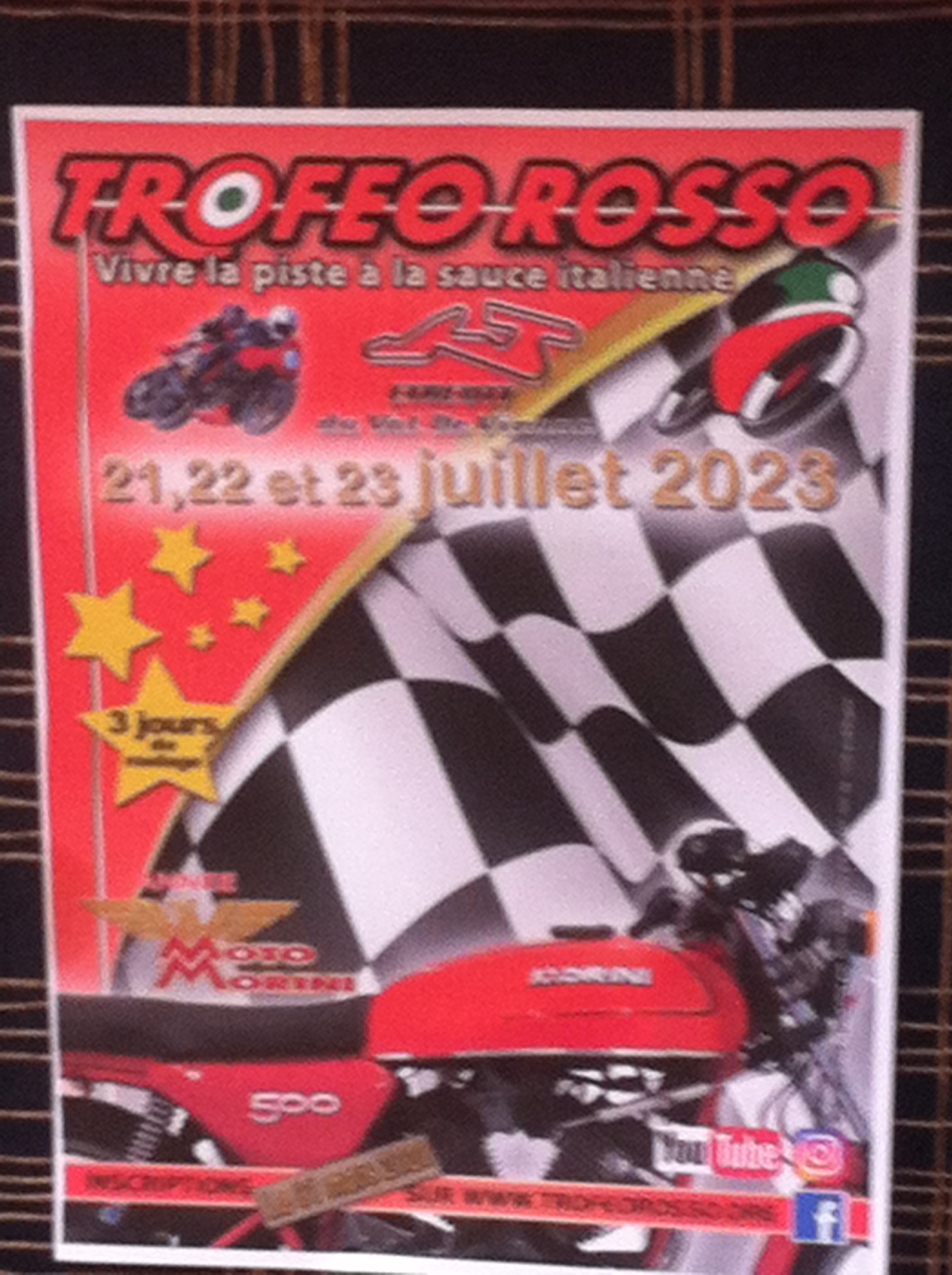 Cet été nous avons été invité à venir exposer nos Morini au Troféo Rosso, ça à été super, les copains qui ne connaissaient pas on beaucoup apécié l'ambiance, l'acceuil et les lieux (douches, restauration etc) Dans le coup le Club à plus ou moins décidé de ne plus participer aux coupes Moto Légende, trop cher pas assez convivial. et de revenir plutôt au Vigeant en Juillet pour ce retrouver. Et là il se trouve que nous allons être les invités d'Honneur de l'éditions 2023.