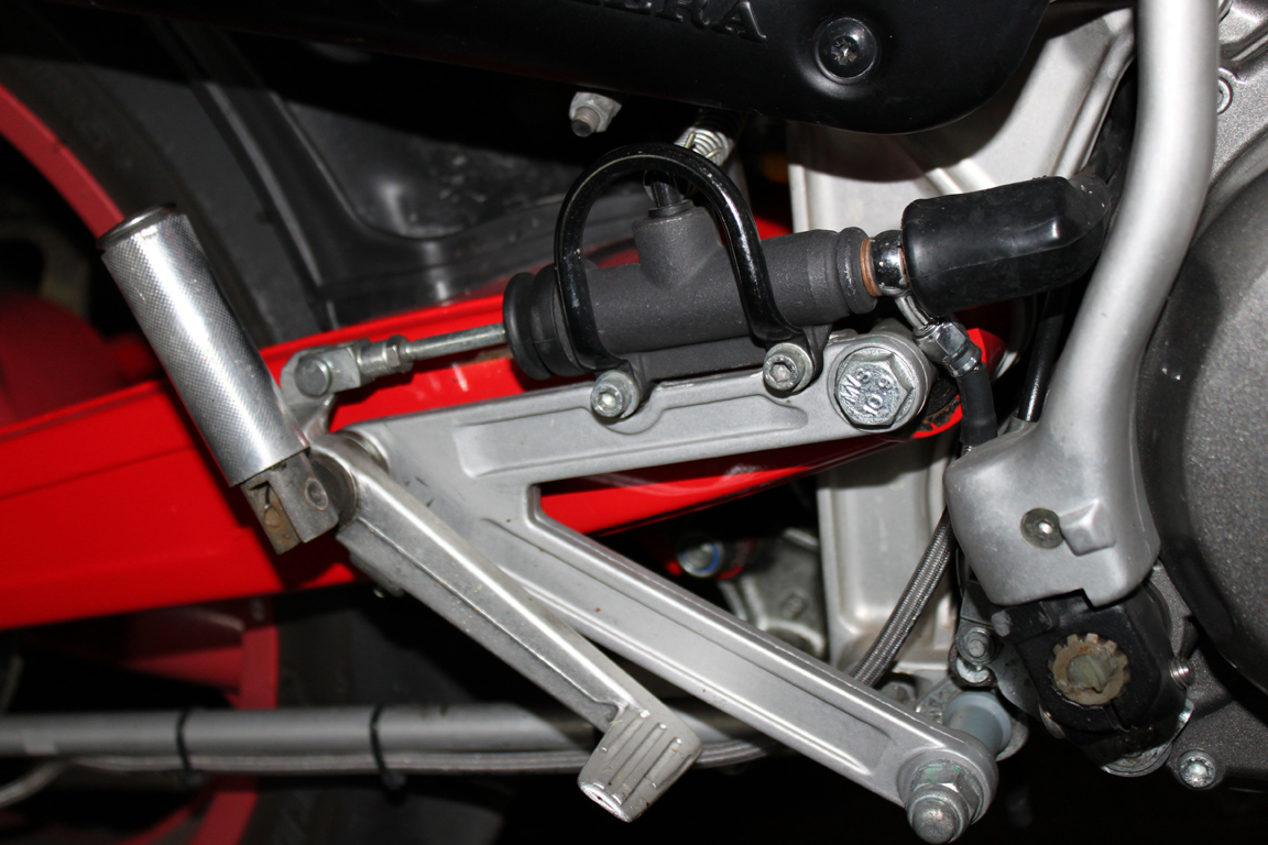 j'ai du amener la moto sur place pour trouver la solution parce que avec les côtes même sérieusement prise par un pro la première foi la durite livré ne montait pas, à cause du passage entre le bras oscillant et le moteur.je joint aussi une photo du raccord droit pour l'étriet