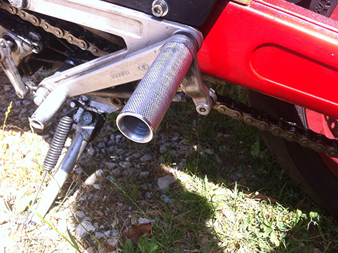 bon, finalement, mes repose-pieds d'origine faisant vraiment la gueule, j'ai acheté des repose pieds racing LSL en alu chez Louis à 30€