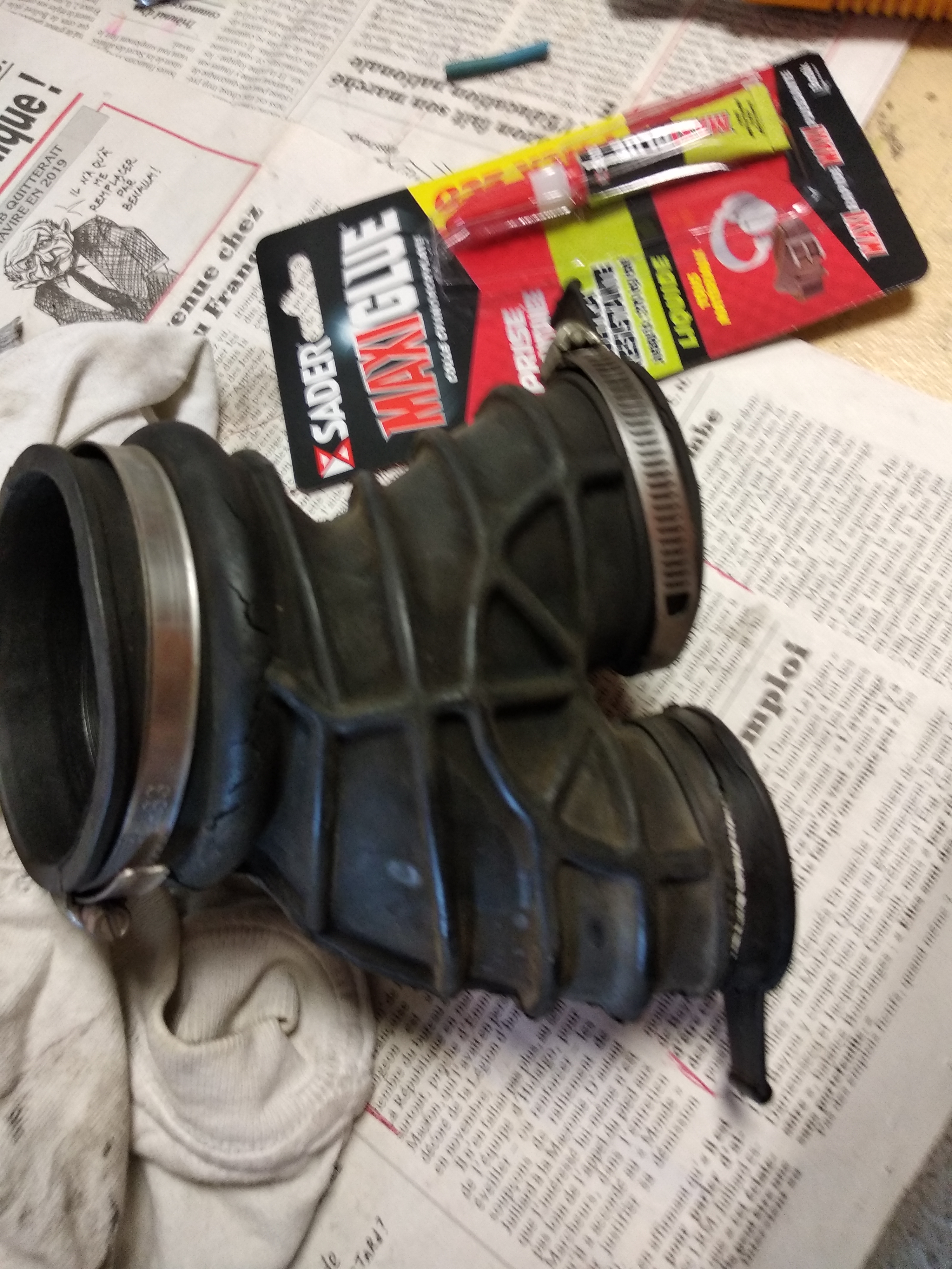 Sinon je cherche cette pièce dont j'ignore le nom. C'est un manchon caoutchouc. Il est fendu au niveau d'un collier.