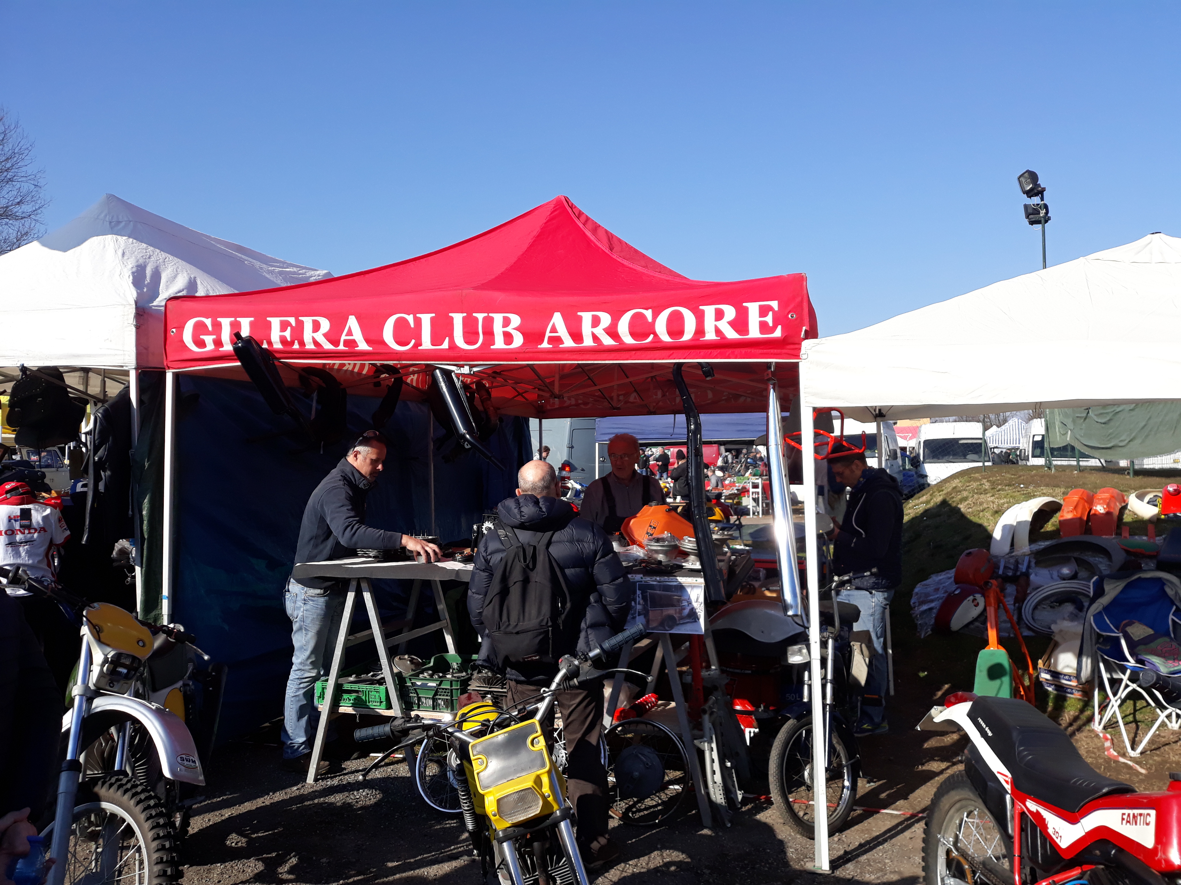 Bonsoir non pas de pieces propre aux 600 , et saturno ( pour mon frere qui en possede une , je lui ai trouver une paire de clignotant neuve c'est tout). Le grand Bonhomme qui est dominant sur la photo du stand est un descendant direct de la FAMIGLIA GILERA . Ce stand etait dedié a l'affiliation au club GILERA STORICO ,