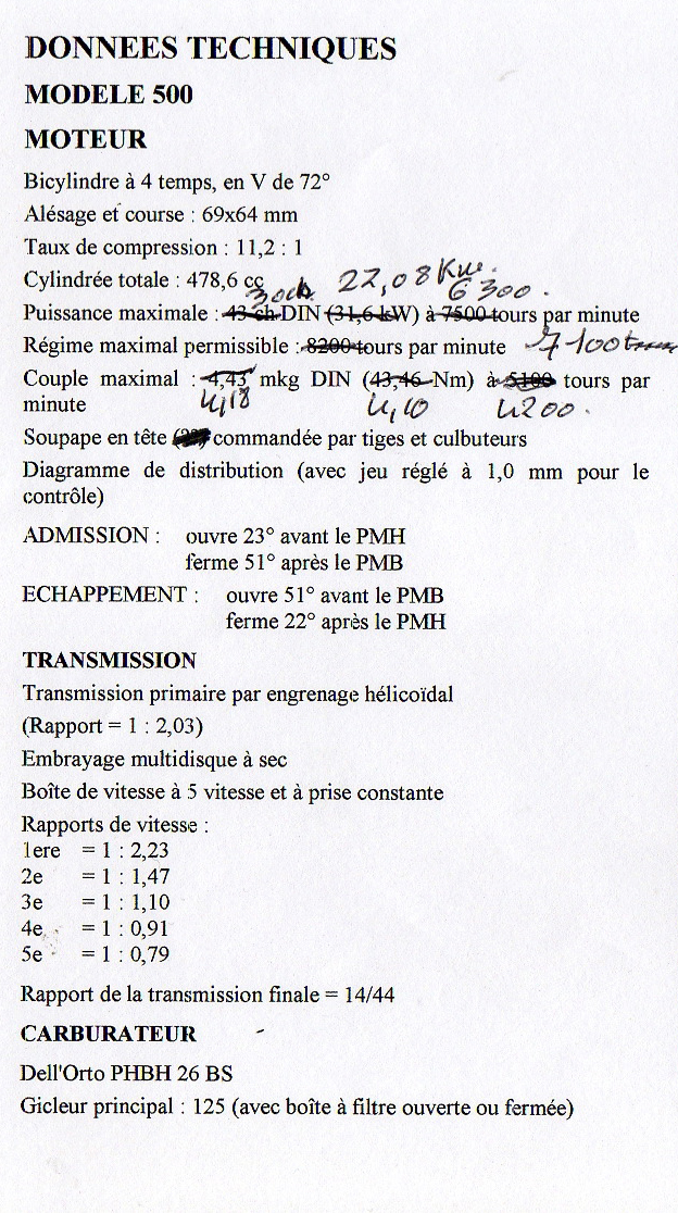 Mais 43 CV c'est la puissance d'une 500 Yamaha XS qui possède deux ACT et 4 soupapes par cylindre et j'en ai eu sous les fesses parce que mon frère en a acheté une en 76, c'est vraiment plus puissant y pas photo.