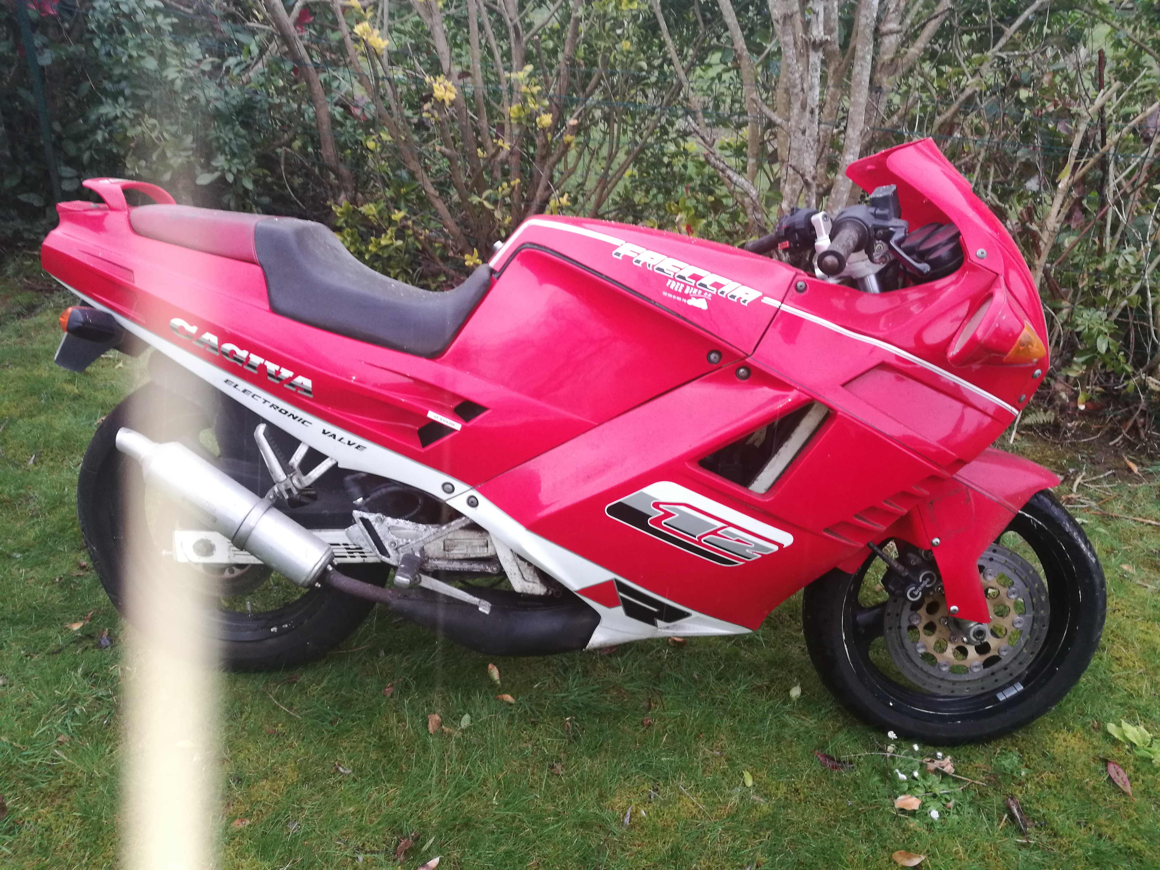 J'ai sorti un autre brelon, ces derniers jours. Une cagiva freccia de 92 qui était stockée dans mon abri de jardin. Pas démarrée depuis au moins 2 ans. J'ai mis une batterie, mis le contact, starter, et elle a démarrée au quart de tour. Bon, il y a quand méme un pb dessus. Elle prend bien les tours, mais elle "s'assoit" dès qu'il y a la moindre côte. Sur ces modèles, il y a une valve à l'échappement. J'ai regardé, la valve n'est pas super bien réglée, mais elle fonctionne correctement.Je pensais qu'elle était peut-être bloquée en poistion ouverte, ce qui aurait fait qu'elle manque de couple. Mais c'est pas ça. Cette bécane a été achetée à un apprenti mécano, dans un garage moto. Je vais démonter le carbu, pour vérifier qu'il a les bon gicleurs. Sur ce type de bécane, vous verriez quoi, à vérifier ? (faut que je pense à prendre la compression).