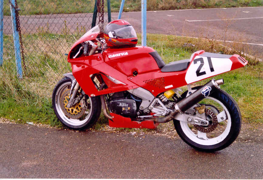 j'ai retrouvé une photo mais c'est bien ce que je pensais: un des protos fait par Seurat et la Sima en 1992, mito pas Freccia, pour tourner en SoS européen avec le petit Chambon en pilote , le grand frère roulait avec une Ducati 550 supermono. Racheté après la mort de Mr Seurat qd le stock a été vendu. Photo prise si je me souviens à Pouilly en auxois.