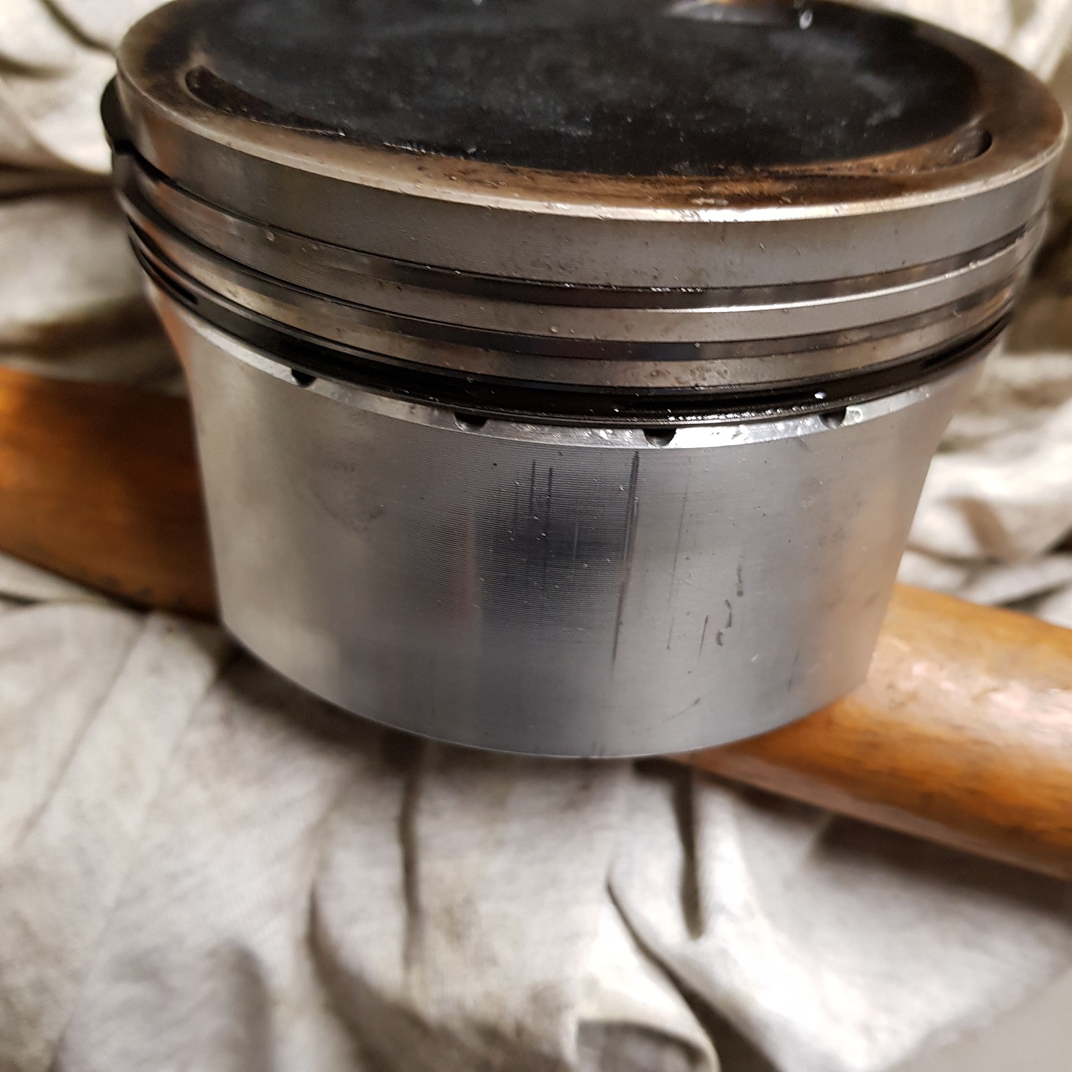 En dehors des rayures sur le piston et le cylindre c'est assez comparable, je n'ai pas démonté la bas moteur mais si je devais le remettre en route je me contenterais d'une remise en état de la culasse (soupapes Guides) et du segment neuf, et ça sur les conseil d'un excellent mécanicien.