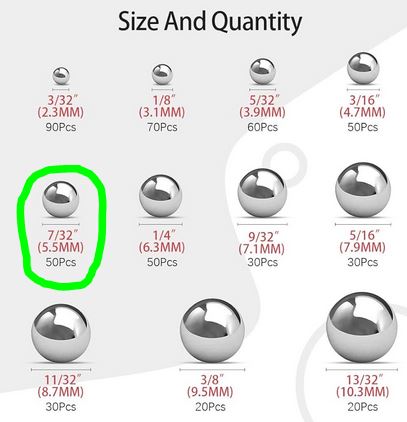 C'est une bille de 5,55 mm, plus précisément 7/32eme de pouces, la plupart des roulements utilisant des billes définies à l'origine en cote pouces: