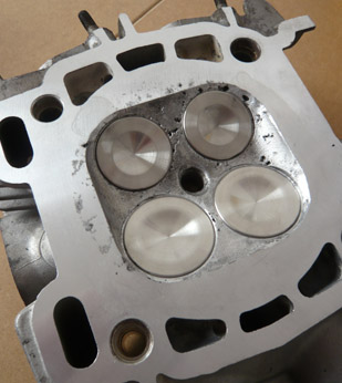 Bon impossible de sortir les goujons le moteur est donc par terre.Je sort la culasse,le joint n'est pas pété mais j'ai un vilain dépos marron dur le long d'un goujon et j'ai des grains de sable sur le dessus de mon piston,ça doit rien arranger.Mon nouveau joint de culasse est commandé et comme je n'y connais pas grand chose en 4 temps que me conseillez-vous de faire pendant que la culasse et démontée?