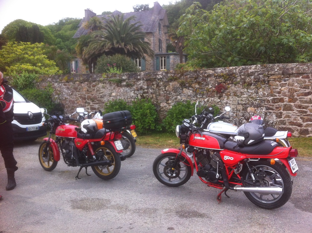 Et puis franchement les seuls qui sont arrivé par la route de loin sur leurs motos c'est les Anglais avec des 250 et 350 bicylindre ainsi qu'une des leurs avec une 125 H, et un Français qui vie en Irlande sur une 250 Settebello des années 60. presque tous ont d'autres projets en France cette semaine. il y a même un couple qui descend en Savoie sur leurs deux 250 twin.